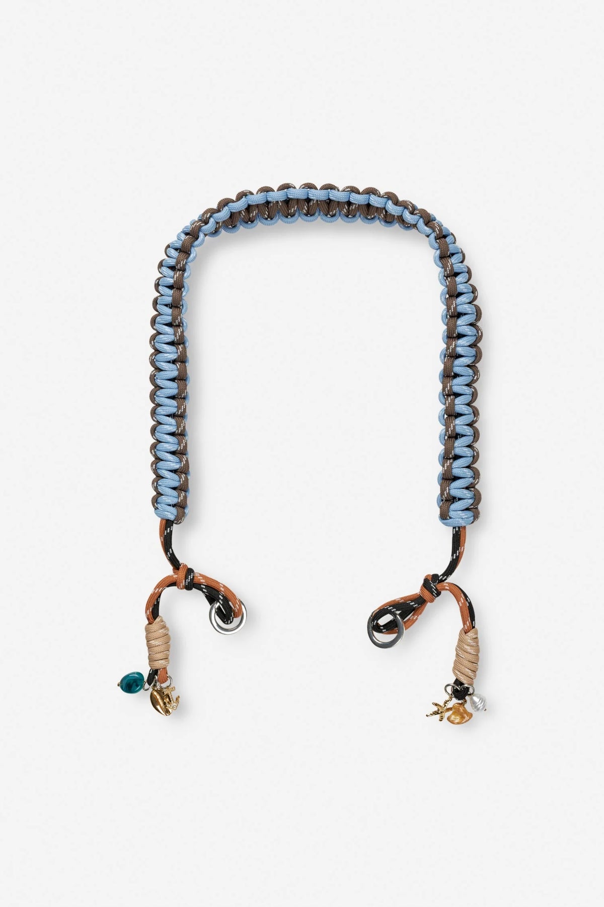 Aftagelig taskestrop i snoet rebmateriale med smukke detaljer og charms.