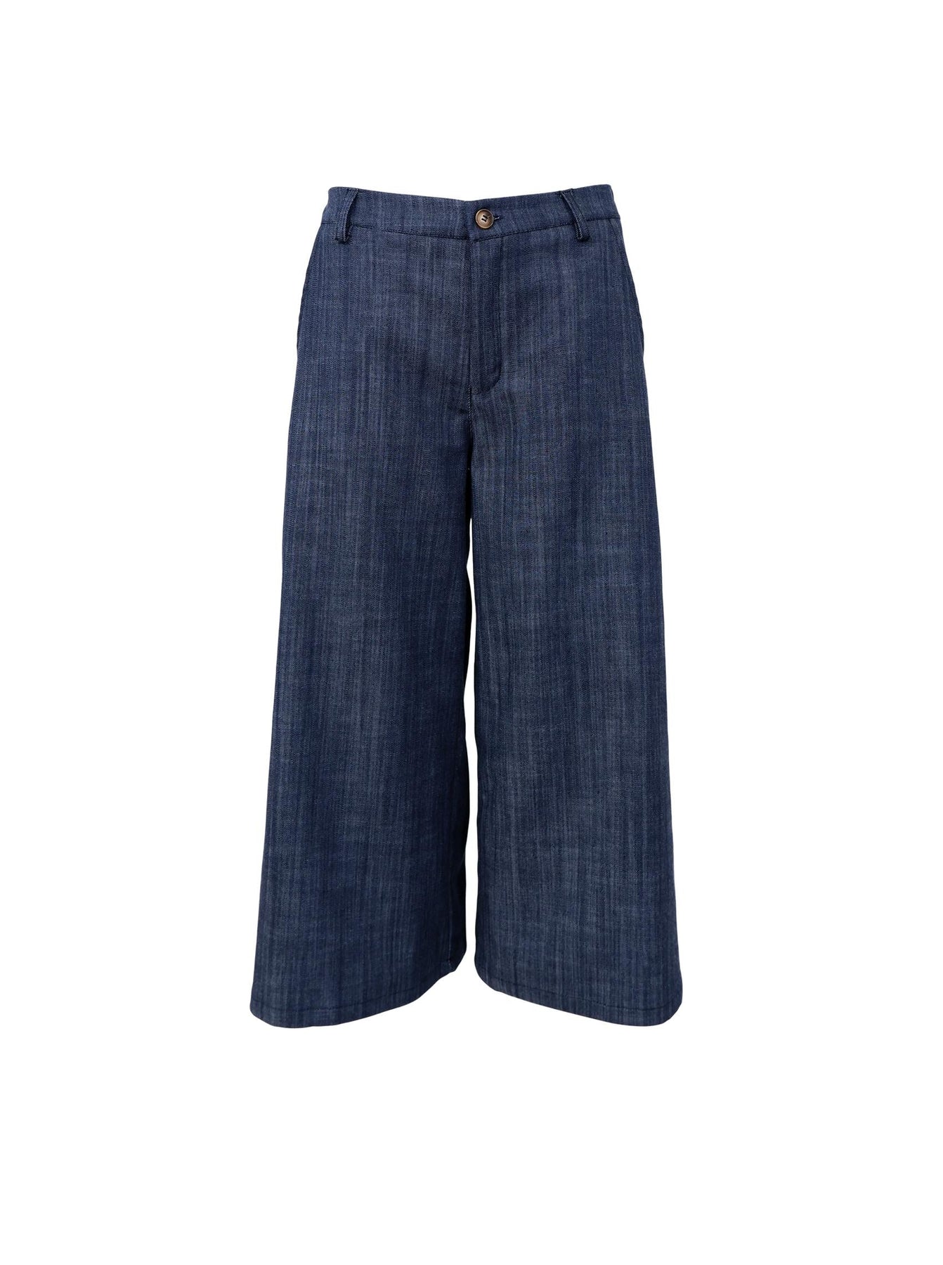 Trendy culotte bukser med mellemhøj talje og bredde ben, der giver et afslappet og moderne udtryk. Bukserne er en del af vores populære Box-serie, og har bæltestropper, knap- og lynlåslukning foran samt praktiske sidelommer.