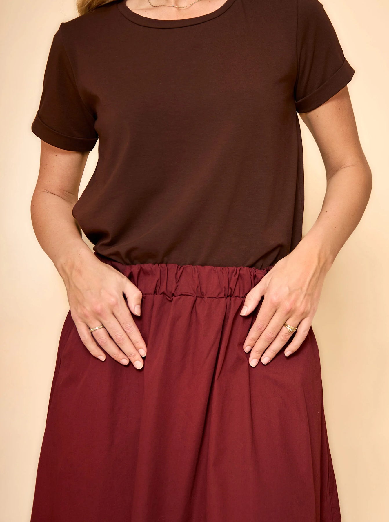 Den kortærmede May t-shirt er en lækker løstsiddende bomulds tee med rund hals og med en lille fold på ærmerne. Blusen er ensfarvet og helt enkel, hvilket gør den utrolig alsidigt, da den dermed kan sammensættes med nærmest hvad som helst.