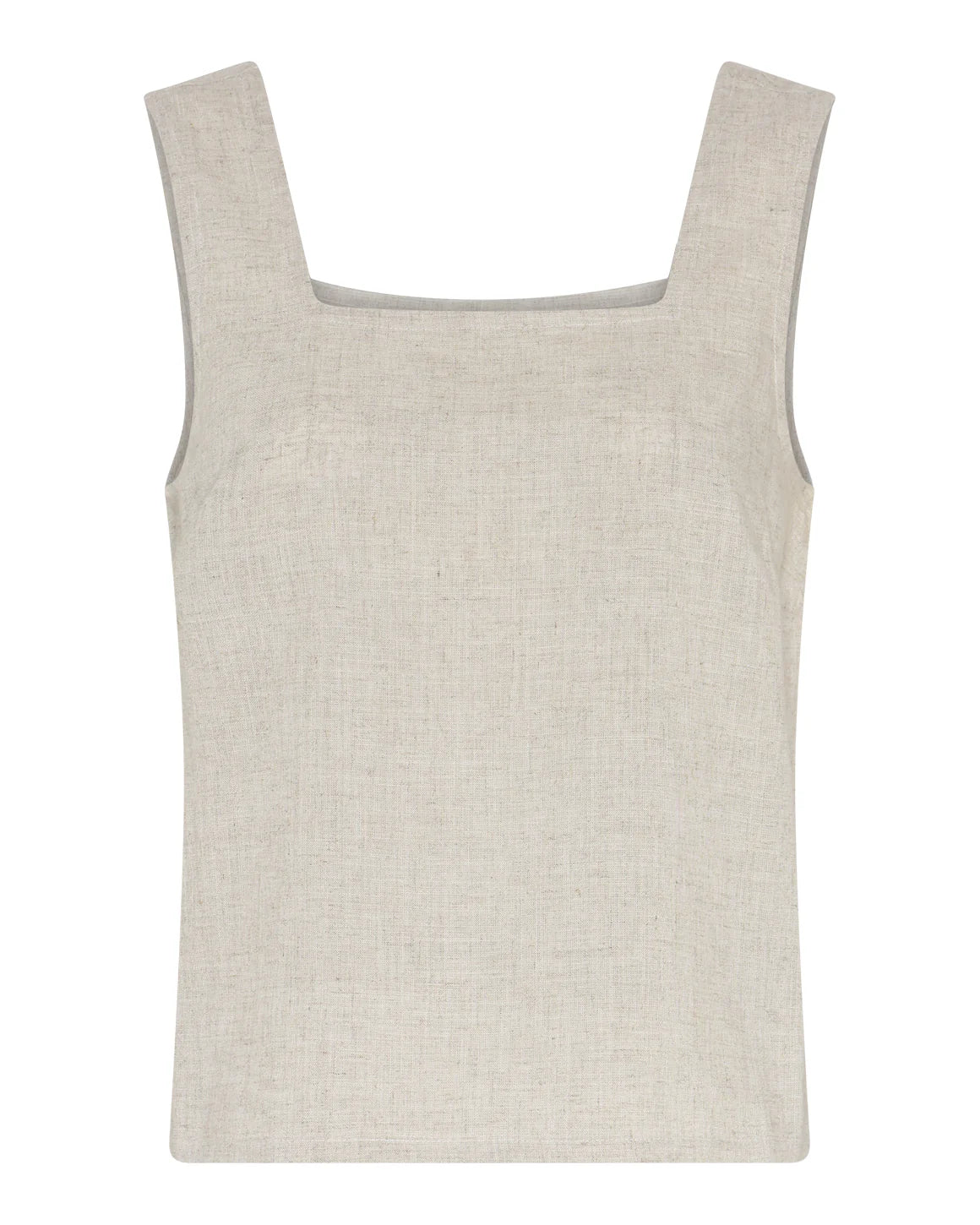 Lina Top er en luftig kort sommertop, fremstillet i en behagelig blanding af 70% bomuld og 30% hør, som giver både komfort og et naturligt fald. Toppen har en moderne firkantet halsudskæring, brede stropper og brystindsnit, der skaber en flatterende og veldefineret pasform