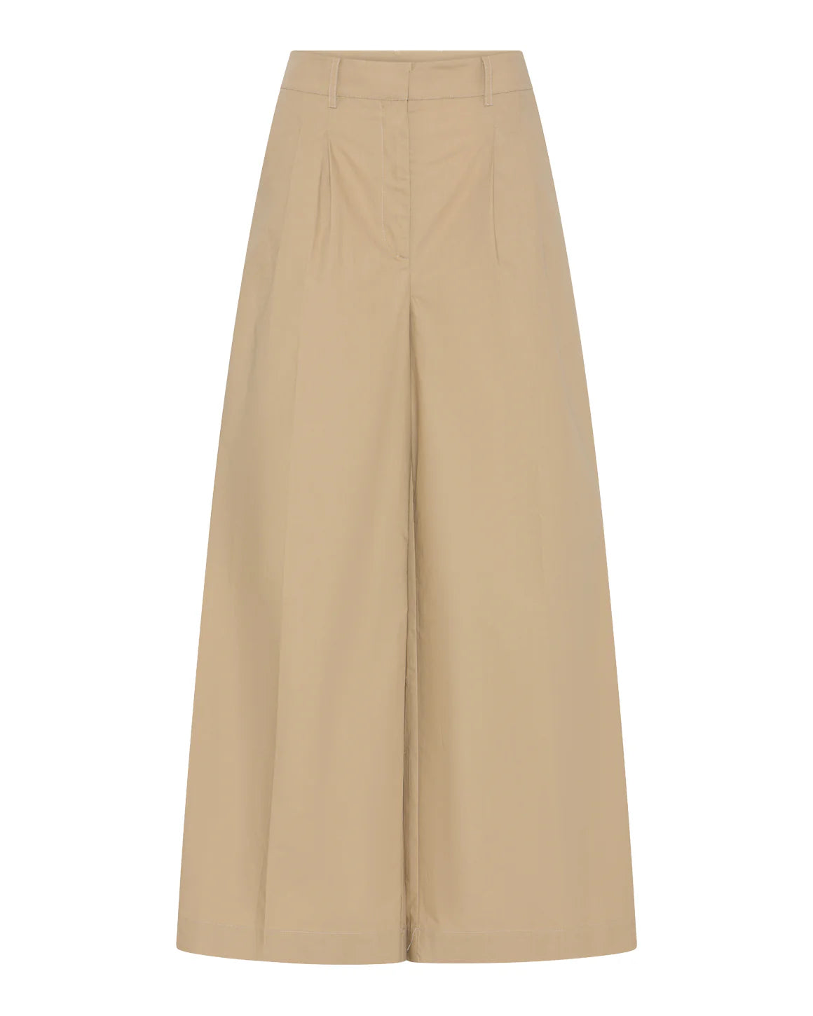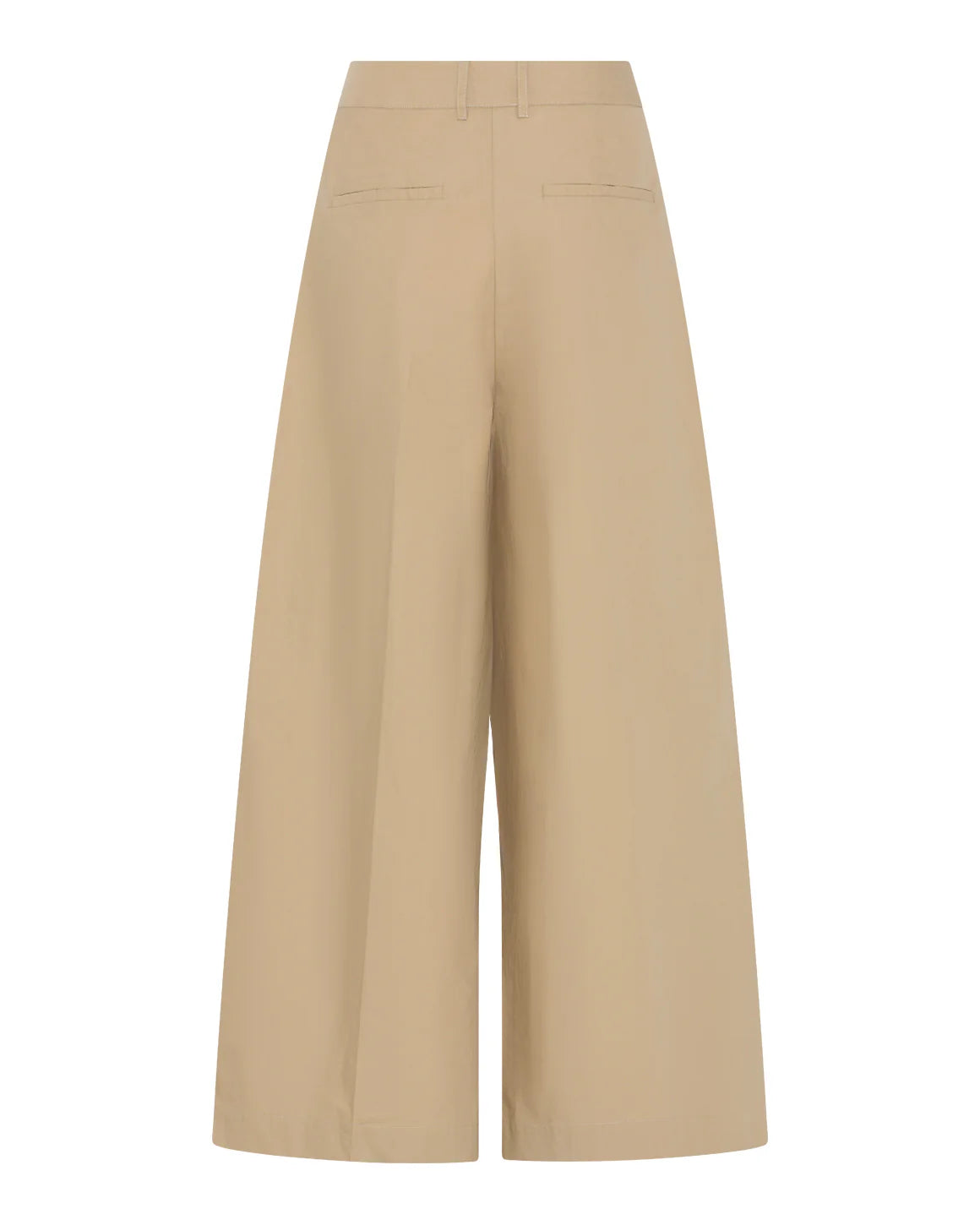 Elegant buks med god vidde i benene, der skaber en flot og afslappet silhuet. Den er lavet i en fast 100% bomuldskvalitet, som giver struktur og et skarpt udtryk. Foran har den læg i taljen, som giver et smukt fald og ekstra komfort. Bukserne er designet med skrålommer, bæltestropper og klassisk lynlåslukning midt for, mens de bagpå har lukkede paspellommer for et stilrent og skræddersyet udtryk.