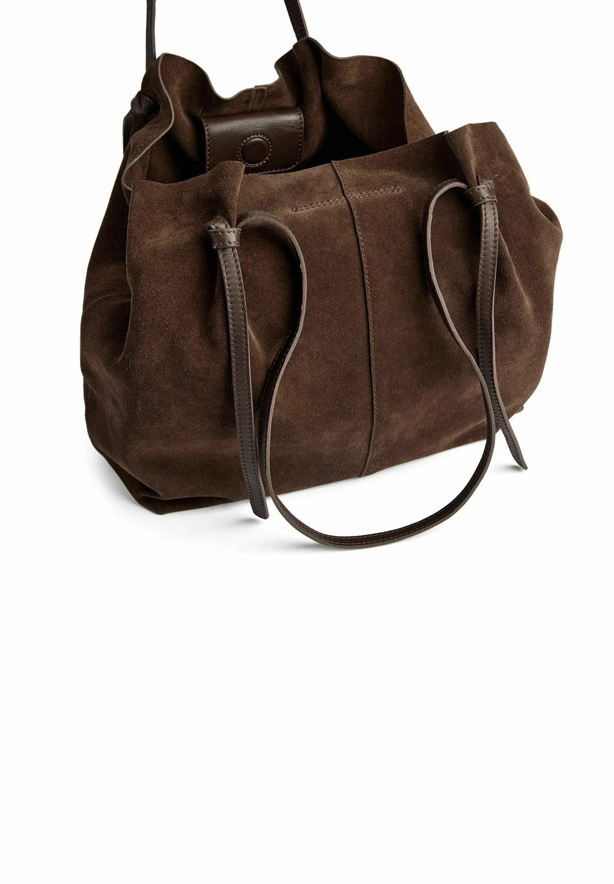 Lækker ruskindsshopper i cool design med justerbare stropper. Det anbefales at imprægnere tasken inden brug. Tasken er desuden udstyret med en smart lukning bestående af en trykknap og en magnetknap øverst, som sikrer en sikker og nem åbning og lukning, så dine ejendele altid er trygt opbevaret.