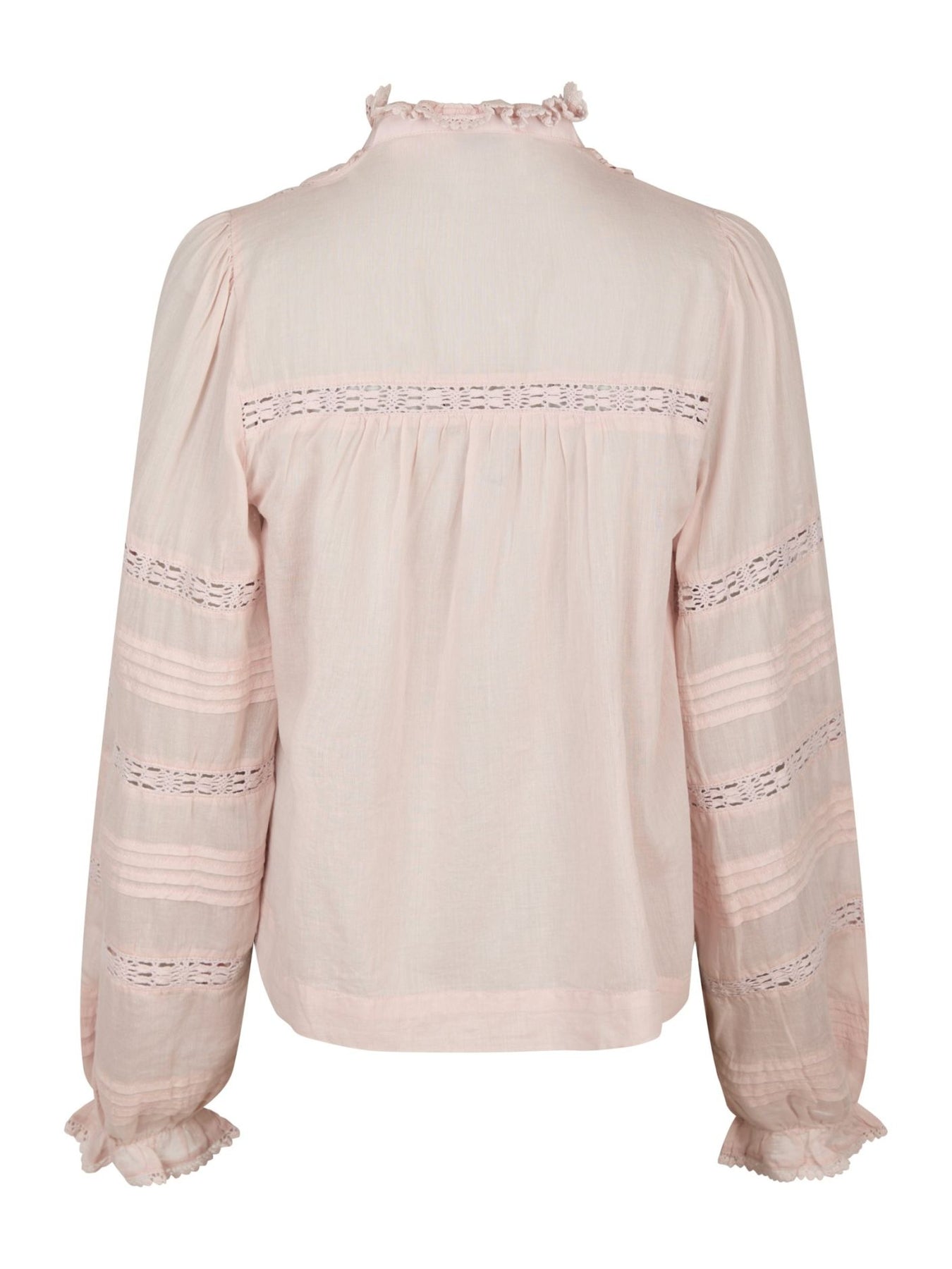 Sød feminin bluse med læg og bånd detaljer. Blusen lukkes med knapper og har en åben halsudskæring.